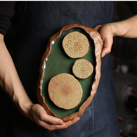 From $6.60 USDUnit price /UnavailableLotus Pottery Pot Bearing Vintage Small Mat Base Tea Tray