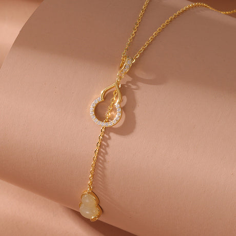$37.00 USDGrundpreis /Nicht verfügbarS925 Sterling Silber Kürbis Halskette Hetian Jade Fu Lu lu