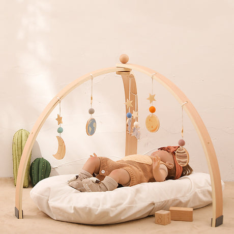 Neugeborenen Baby Rasseln Holz Dreieck Rack Bett Glocke Baby Krippe Spielzeug