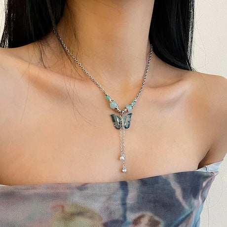 $38.00 USDGrundpreis /Nicht verfügbarNeue chinesische Stilgrüne Schmetterling Perlen Quaste Halskette