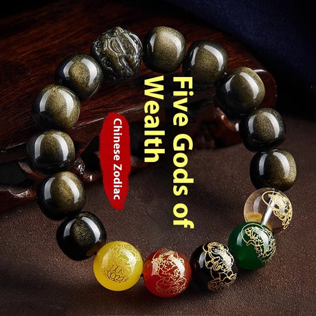 Ab $29.00 USDGrundpreis /Nicht verfügbarFünf Götter des Reichtums Lucky Perlen Armband Zodiac Gold Obsidian Handheld Rosenkranz