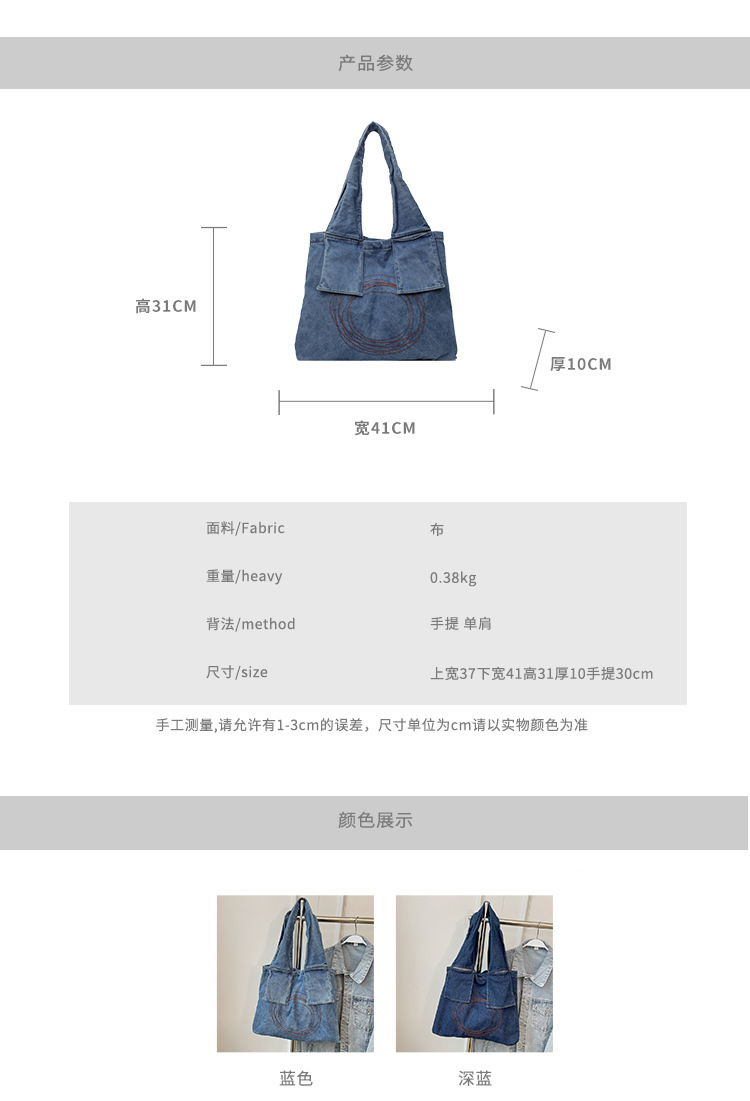 Denim Retro Frauen Umhängetasche große Kapazität Handtasche - 192 Blau ist auf Lager und wird versandt, sobald es wieder verfügbar ist