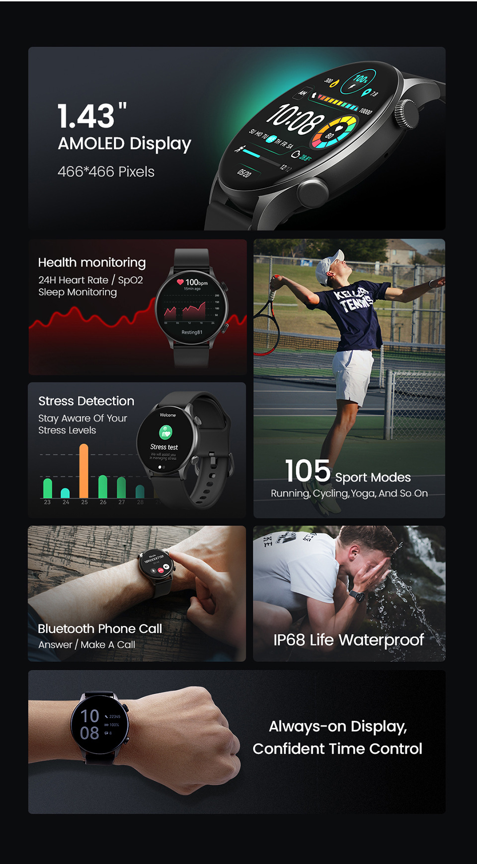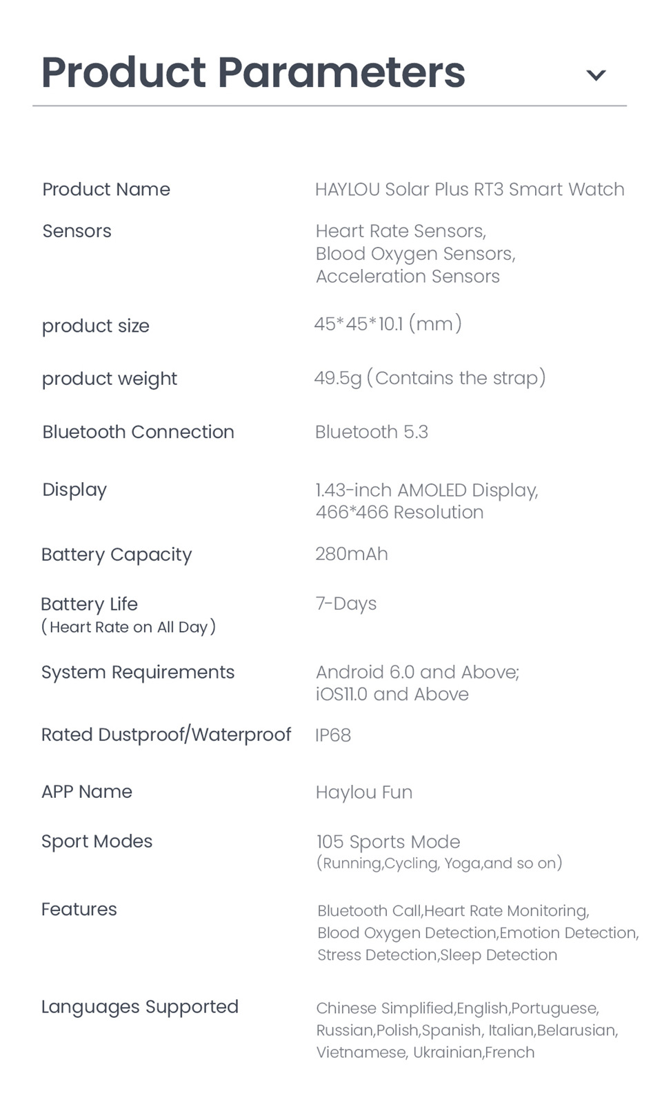 Haylou RT3 (LS16) SmartWatch unterstützt die Bluetooth -Aufruffunktion und ermöglicht es Ihnen, problemlos zu antworten und Anrufe zu tätigen. Aufgebaute Sport-Schrittzählerfunktion, zeichnet sportliche Daten genau auf und hilft Ihnen dabei, Ihre Gesundheitsziele zu erreichen. Modedesign, ausgestattet mit einer Vielzahl von Sportmodi, geeignet für den täglichen Fitnessbedarf wie Laufen und Gehen. Egal, ob es täglich während des Trainings getragen oder verwendet wird, Haylou RT3 kann ein effizientes und bequemes intelligentes Erlebnis bieten, damit Sie Ihre Gesundheit und Ihren Lebensstil verwalten können.