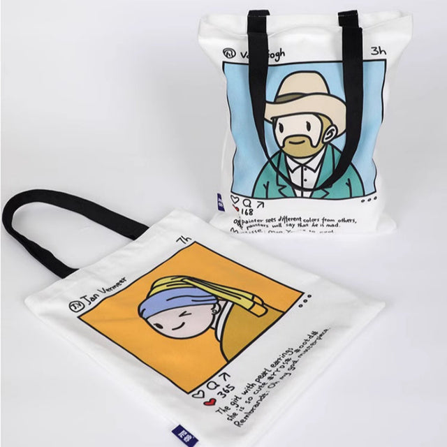 Illustration Ins Style niedliche tragbare Leinwand -Umhängetasche - Mädchen trägt Perlenohrringe ist auf Lager und wird versandt, sobald es wieder verfügbar ist