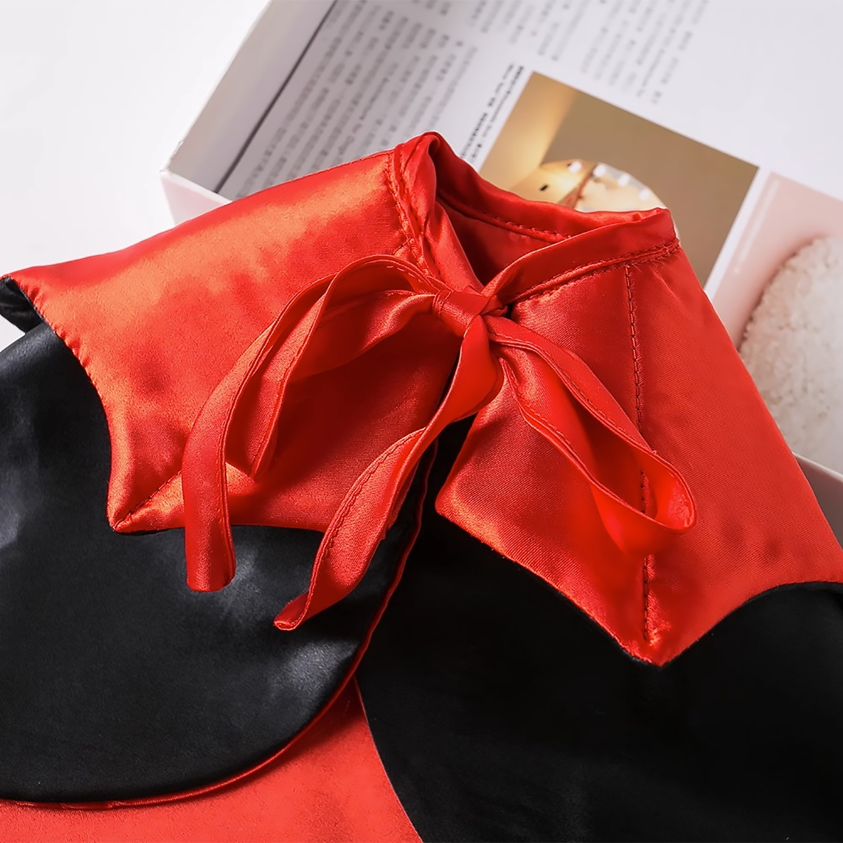 Give your furry friend a bold Halloween makeover with this reversible black-and-red pet cape. Designed from lightweight polyester, it’s easy to wear, comfortable for long hours, and perfect for both cats and small dogs. The double-sided design lets you switch between a sleek black look and a striking red finish, so your pet can stand out at every party, walk, or family photo.