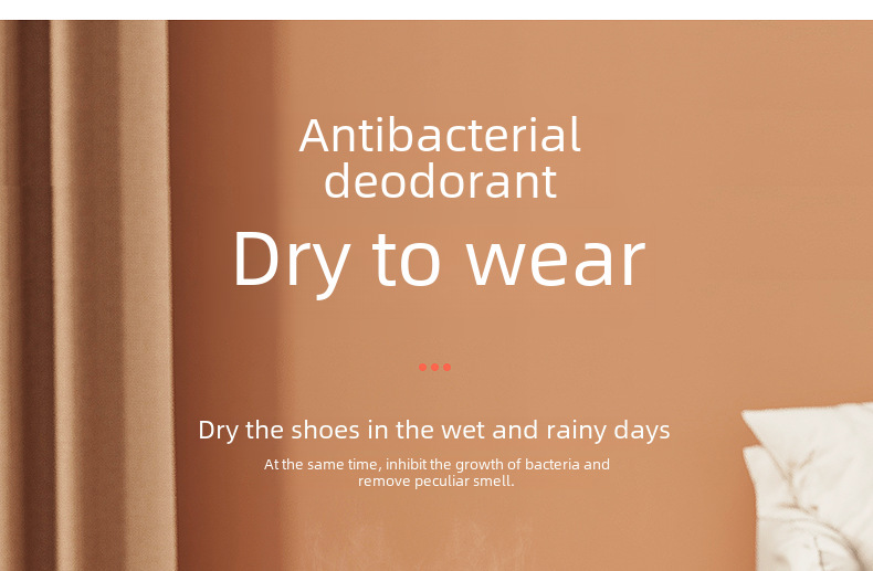 This home dormitory shoe dryer is equipped with an intelligent timing function to help dry shoes quickly and remove odors at the same time. The built-in sterilization function can effectively remove bacteria in the shoes and keep your feet healthy. The portable design is suitable for home, dormitory or travel use, and it can be easily stored and save space. Whether it is sports shoes, rain boots or daily shoes, this dryer can provide you with efficient drying and sterilization care, so that your shoes are always dry and fresh.