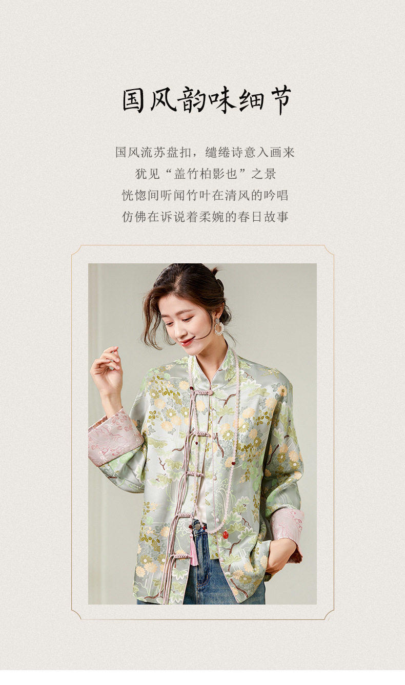 New Chinese Style Ethnic Style 32 Momme Heavy Silk Tops Women's Autumn Tang Suit Clothing - green / S is backordered and will ship as soon as it is back in stock.
