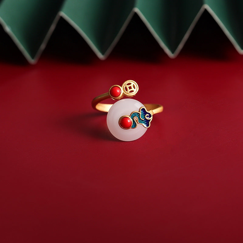 Retro Style Hetian Jade Earrings Little Finger Ring - Xiangyun Ring / Opening Adjustable is backordered and will ship as soon as it is back in stock.