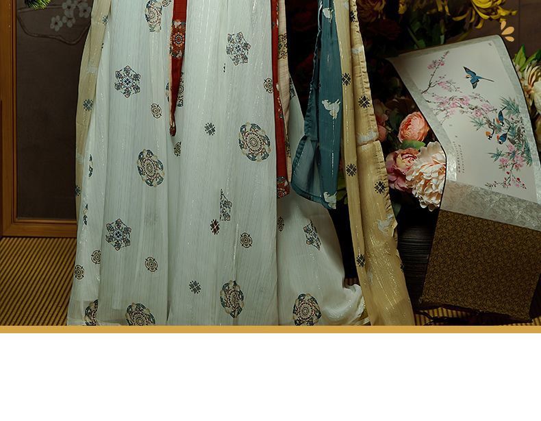 This Hanfu is inspired by the culture and art of the prosperous Tang Dynasty. It reproduces the elegant charm of Tang Dynasty women with luxurious and gorgeous design and soft tailoring. The overall suit uses the classic chest-length skirt design of the Tang Dynasty, with exquisite embroidery and soft colors, creating a spring outfit with both gorgeous and classical temperament.