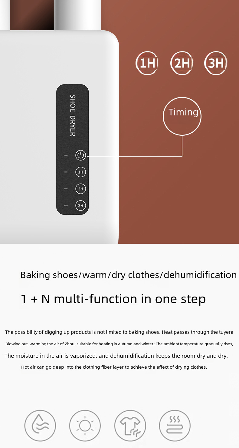 This wall-mounted shoe dryer is equipped with ozone disinfection and deodorization functions, which can effectively remove odors and bacteria in shoes, keeping shoes fresh and hygienic. The intelligent drying technology combined with the telescopic design can adapt to different shoe types, quickly dry and maintain the optimal temperature of the shoe materials. The telescopic design is easy to store and saves space, suitable for home, office or dormitory use. Whether it is sports shoes, rain boots or leather shoes, this shoe warmer can provide efficient and gentle drying and sterilization to ensure your shoes are healthy and comfortable.
